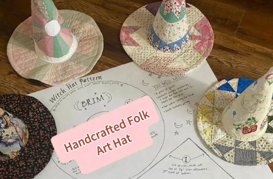 These hats blend American folk art tradition with a touch of witchcraft whimsy. Wear it to festivals, markets, or as a statement piece in your home.