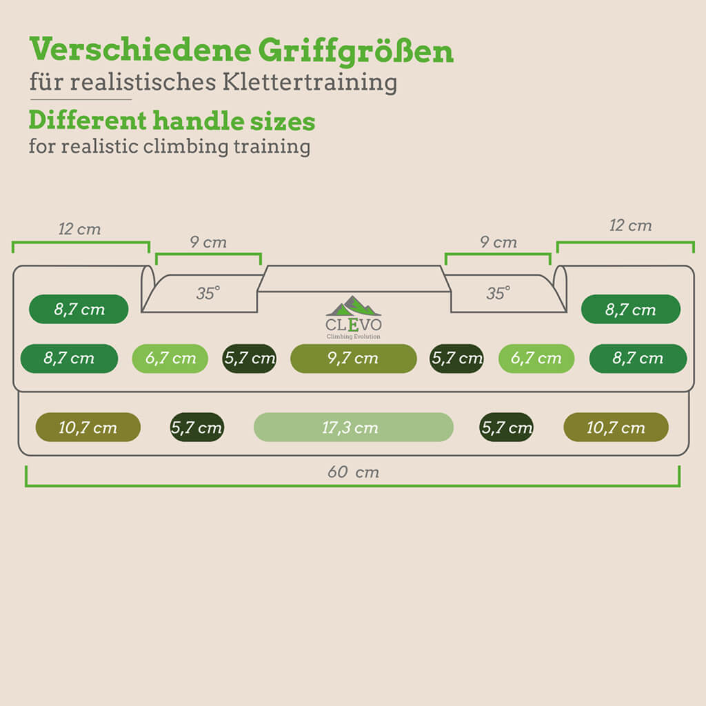✅ EXTRA LONG : With a length of 60cm, a width of 14.6cm and a depth of 5.2cm, the hangboard offers three rows of handles at different depths and is therefore significantly larger than conventional boulder training boards.