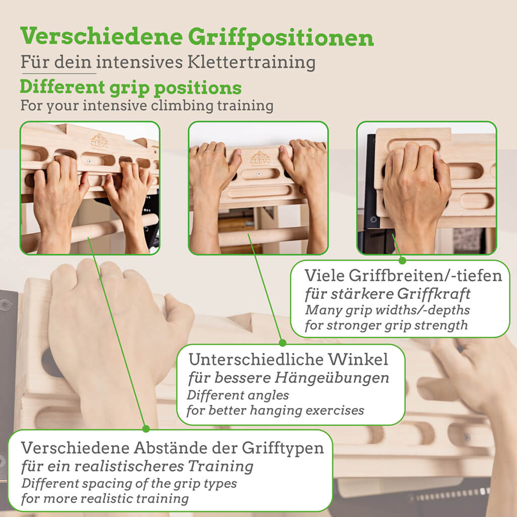 ✅ BEST WOOD : We use real beech wood for our hangboard to ensure maximum bouldering training. Cheap climbing training boards are often made of inferior material and are not suitable as bouldering accessories. Thanks to our extra polish and precise grinding, your fingers remain free of splinters.
