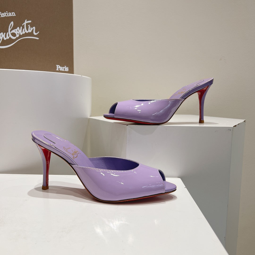 CHRIS* LOUB* 24SS Patent Leather Peep Toe High Heel Slippers 1:1 VIP